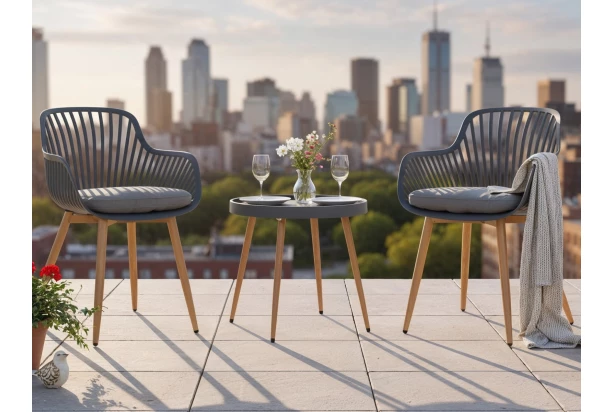 Vytvořte si příjemné místo k odpočinku i na menším prostoru s kompaktním 3dílným zahradním setem. Souprava nábytku se skládá z kulatého odkládacího stolku a dvou pohodlných křesílek, které společně vytvoří ideální zákoutí pro ranní kávu, odpolední relax i večerní posezení ve dvou. Kombinace kovu a odolného polypropylenového plastu zajišťuje dlouhou životnost a snadnou údržbu, díky použitým materiálům je set vhodný pro venkovní využití a bez obav zapadne do prostředí zahrady, terasy i balkonu. Svými rozměry se hodí nejen do každého koutu zahrady či terasy, ale také na menší balkon, kde pomůže vytvořit útulné a svěží místo pro chvíle pohody na čerstvém vzduchu. Praktické, stylové a prostorově nenáročné řešení pro každodenní chvíle pohody.