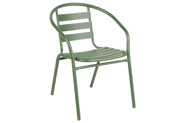 Zahradní židle má pohodlný tvar, stabilní konstrukci ze zeleného kovu a skvěle tak splyne s venkovním prostředím. Pasuje na zahradu i balkon a snadno ji zkombinujete s ostatním kovovým nábytkem. U této židle oceníte i možnost stohování více kusů na sebe – ušetříte tak okolní prostor při skladování.