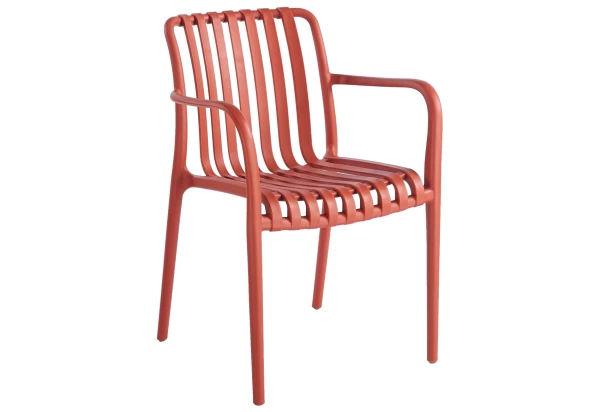 Pohodlně tvarovaná zahradní židle s područkami je vyrobena z odolného polypropylenového plastu v barvě terracota a najde své místo i na zahradě i balkonu.