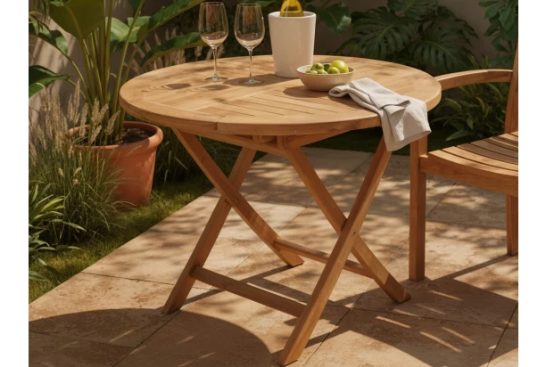 Kulatý zahradní stůl o průměru 90 cm z kvalitního teakového dřeva představuje ideální volbu pro všechny, kteří hledají spojení přírodní krásy, funkčnosti a dlouhé životnosti. Jednoduše nadčasovým stylem přirozeně zapadne do prostředí zahrady, terasy i balkonu, kde vytvoří příjemné místo pro obědy, grilování nebo posezení s přáteli. Praktickou výhodou je možnost snadného složení, což oceníte zejména během zimních měsíců nebo při potřebě úspory místa. Stůl tak můžete jednoduše uskladnit a prodloužit jeho životnost. Teakové dřevo je ceněno pro svou mimořádnou tvrdost, vysokou odolnost vůči vlhkosti, slunečnímu záření i změnám teplot, díky tomu je se vyznačuje dlouhou životností a to i při pravidelném venkovním používání.