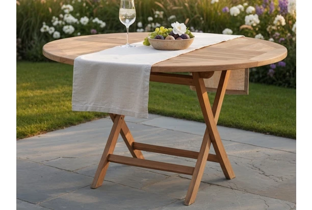 Kulatý zahradní stůl o průměru 120 cm z kvalitního teakového dřeva představuje ideální volbu pro všechny, kteří hledají spojení přírodní krásy, funkčnosti a dlouhé životnosti. Jeho nadčasový design přirozeně zapadne do prostředí zahrady i terasy a vytvoří harmonické místo pro rodinné obědy, letní grilování i posezení s přáteli. Praktickou výhodou je možnost snadného složení, což oceníte zejména během zimních měsíců nebo při potřebě úspory místa. Stůl tak můžete jednoduše uskladnit a prodloužit jeho životnost. Tento kulatý teakový stůl se stane elegantním a funkčním centrem vašeho venkovního posezení – místem, kde se budou odehrávat ty nejpříjemnější chvíle pod širým nebem. Teakové dřevo je ceněno pro svou mimořádnou tvrdost, vysokou odolnost vůči vlhkosti, slunečnímu záření i změnám teplot, díky tomu je se vyznačuje dlouhou životností a to i při pravidelném venkovním používání.