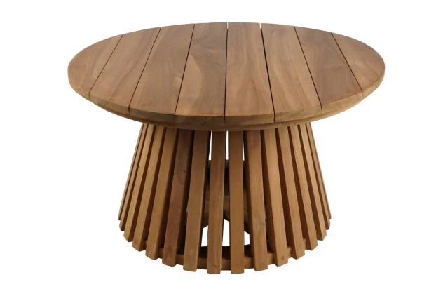 Kulatý zahradní stolek o průměru 70 cm je vyroben z teakového dřeva a zaujme atraktivním lamelovým designem podstavy v kónickém tvaru. Poslouží pro všestranné odkládání jídla, pití anebo jiných věcí. Můžete ho snadno umístit k zahradní pohovce, lavičce anebo křeslu. Stolek z teakového dřeva je ideální volbu pro všechny, kteří hledají spojení přírodní krásy, funkčnosti a dlouhé životnosti. Díky přírodnímu materiálu skvěle zapadne do venkovního prostředí. Teakové dřevo je ceněno pro svou mimořádnou tvrdost, vysokou odolnost vůči vlhkosti, slunečnímu záření i změnám teplot, díky tomu je se vyznačuje dlouhou životností a to i při pravidelném venkovním používání.