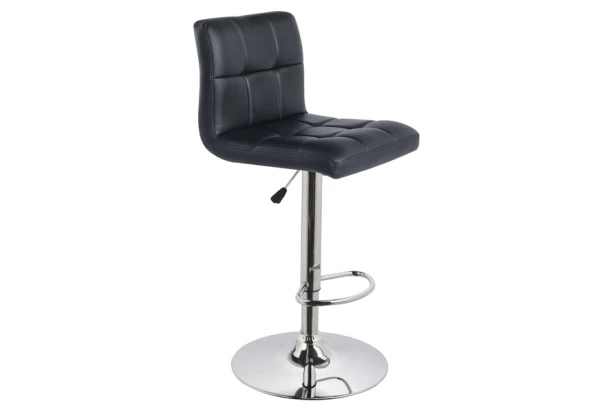 Komfortně polstrovaná barová židle s výškově nastavitelnou konstrukcí. Sedák potažen ekokůží s dekorativním proševem.