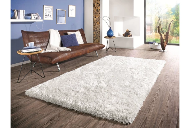 Bílý chlupatý koberec s hustým vysokým vlasem je velmi příjemný na dotek a zútulní každou ložnici či obývací pokoj. Rozměr 160×230 cm.