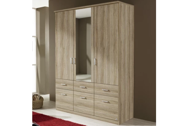 Šatní skříň ze série Bremen je oblíbená pro svou praktičnost a dobrou úroveň zpracování. Vyrobena v dekoru dub san remo. Nabízí úložný prostor, 3 otočné dveře, 1 zrcadlo a 6 praktických zásuvek o různých velikostech pro přehledné ukládání oblečení, prádla a doplňků. Z jednotlivých elementů série Bremen můžete navíc sestavit libovolně velkou šatnu a přizpůsobit si tak úložné prostory podle individuálních potřeb.