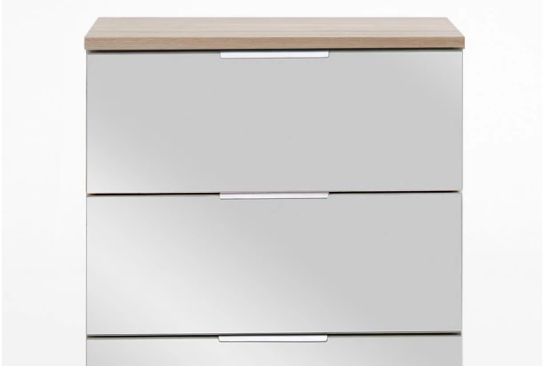 Skříňka s 5 zásuvkami z programu Easy Plus poslouží pro univerzální ukládání věcí nebo i jako přehledný prádelník. V kombinaci dub sonoma a zrcadlo, které dodává komodě luxusní efekt.