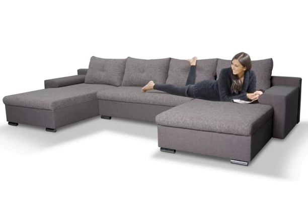 Velkorysý prostor této sedačky vkusně dotváří její trendovní tvary. Potažena šedivou kombinací dvou rozdílných tkanin.