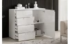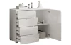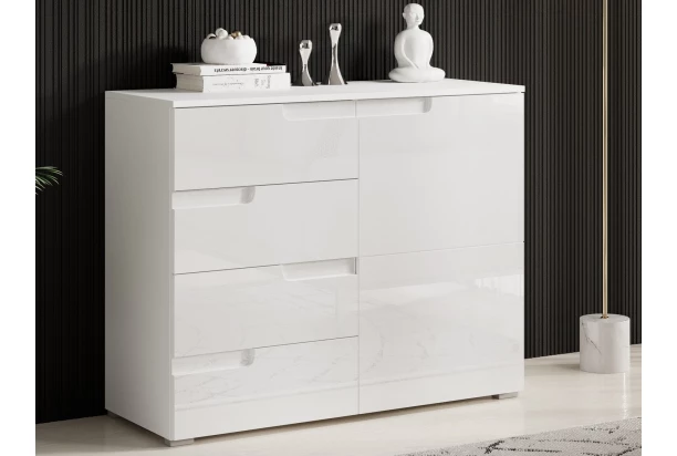 Skříňka se zásuvkami z řady Spice se vyznačuje lesklými bílými povrchy s extravagantní profilací a ideálně se hodí do nadčasově zařízeného bytu. Obsahuje 4 zásuvky a 1 dveře.