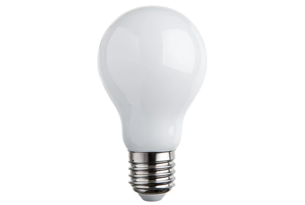 Klasická úsporná E27 LED žárovka o světelném toku 780 lumen a příkonu 8 W.