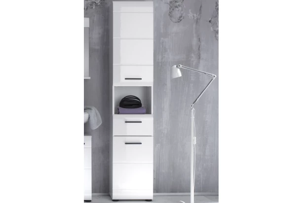Vysoká koupelnová skříňka Skin, lesklá bílá
