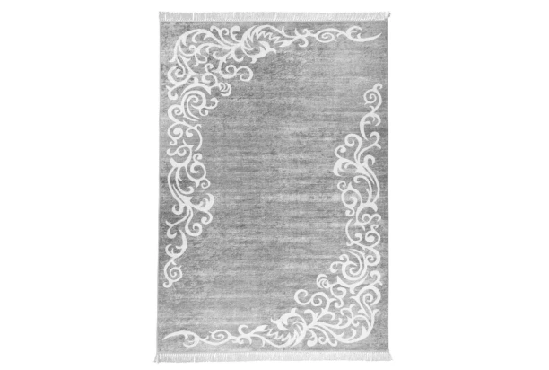 Elegantní šedý koberec s bílým ornamentem na okrajích je příjemně měkký a ve Vašem bydlení vytvoří noblesní atmosféru. Rozměr 120×160 cm.