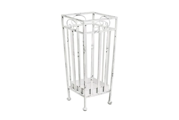 Krásný bílý stojan na deštníky v romantickém nebo rustikálním stylu, ideální doplněk do předsíně.