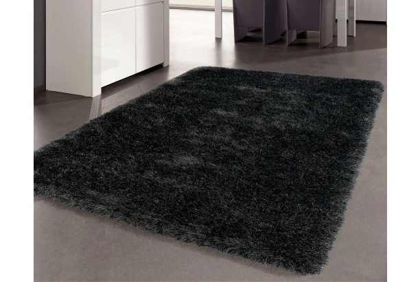 Moderní koberec z kolekce Shaggy Glossy v antracitové barvě s dlouhým vlasem má lurexové vlákno, které přidává koberci lesklý stříbrný efekt. Tento koberec je trendy a vytvoří luxusní efekt v každé domácnosti. Rozměr 80×150 cm.