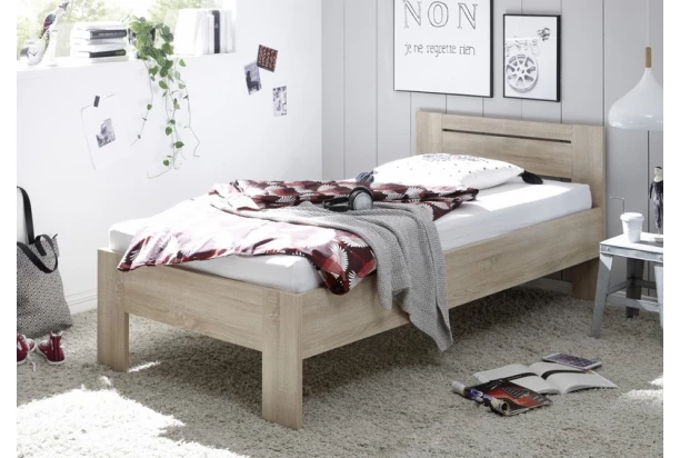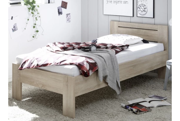 Jednolůžková postel o velikosti 90×200 cm je vyrobena v dekoru dub sonoma a univerzálně se hodí k jakémukoliv nábytku do pokoje dětí, teenagerů i dospělích.
