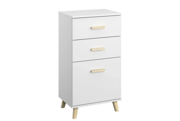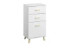 Komoda s otočnými dveřmi a zásuvkami o celkové celkové šířce 47 cm z kolekce Kolding v půvabném skandinávském stylu, který je oblíbený napříč generacemi. Bílé linie nábytku doplňují prvky masivního jasanového dřeva pro vytvoření opravdu stylové atmosféry v prostoru ložnice nebo i jiné místnosti.