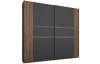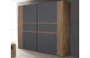 Šatní skříň s posuvnými dveřmi o celkové šířce 226 cm z kolekce Bernau – v trendovní kombinaci dubového dřevodekoru a tmavě šedé barvy. Kvalitní, moderní a prakticky řešený nábytek pro komfortně zařízenou ložnici bez kompromisů.