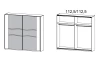 - levý vnitřní blok: šířka cca 112,5 cm, otevřený úložný prostor, 1 x závěsná šatní tyč z kovu, 1 x vnitřní police