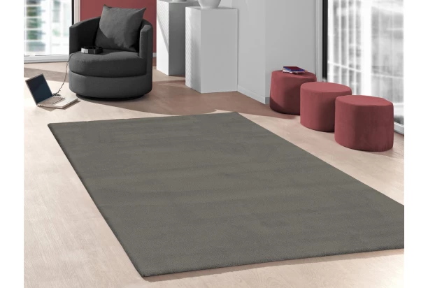 Koberec v antracitové barvě o rozměru 160×230 cm s nízkým vlasem je neuvěřitelně měkký a v pokojích navodí útulnou atmosféru.