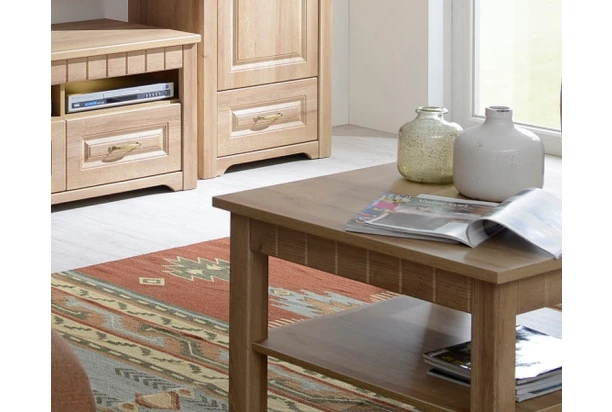 Konferenční stolek Atik ve venkovském stylu si zamilujete, vyroben v útulném dřevodekoru dub riviera. Dekorativní frézované prvky, jedinečný vzhled i precizní zpracování řadí tento model mezi nejoblíbenější.