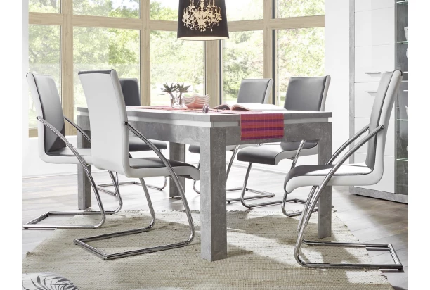 Nechte se inspirovat módními trendy v imitaci šedého betonu. Jídelní stůl s funkcí rozkladu tak dokonale doplní moderně zařízený interier.
