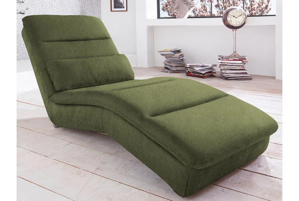 Stylové relaxační lehátko. Zaoblený tvar kopírující křivky těla zajišťuje maximální pohodlí při odpočinku nebo při sledování televize. Potah v jemně strukturované látce v barvě trávově zelená.