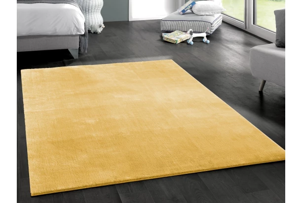 Huňatý a obzvláště měkký koberec v jednoduchém zlatém provedení s mírným leskem je skvělým doplňkem v moderním stylu, který dodá Vašemu obývacímu pokoji nebo ložnici nádech luxusu. Koberec v kožešinovém vzhledu vytváří útulnou atmosféru v každé domácnosti. Rozměr 80×150 cm.