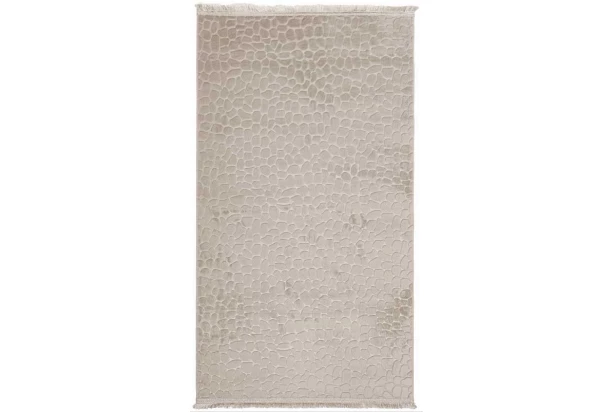 Elegantní měkký koberec v jednoduché béžové barvě je zakončen třásněmi z lesklé nitě. Dvouúrovňové rouno vytváří 3D efekt imitující kamínky, které poskytnou příjemnou relaxační masáž při chůzi naboso. Rozměr 150×220 cm.