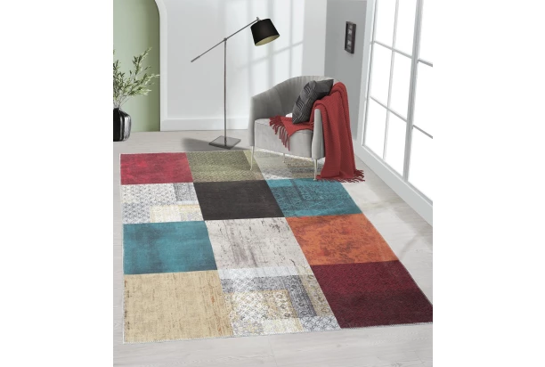 Barevný koberec v působivém patchworkovém vintage provedení dodá obývacímu pokoji nebo ložnici moderní nádech. Rozměr 160×230 cm.