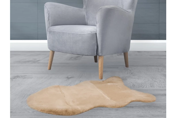 Moderní chundelatý koberec v pískové barvě má vzhled králičí kožešiny a je příjemný nejen na pohled, ale také na dotek. Mazlivý plyšový koberec si zamilujete pro jeho hebkost a jemnost, který navíc krásně doplní a doladí Váš domov. Kožešinový koberec má rozměr 60×90 cm.