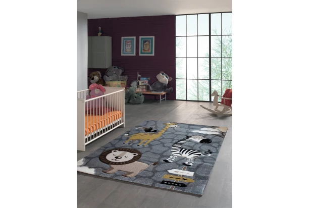 Koberec s motivem veselých zvířátek ze zoo potěší všechny děti a dovede jejich pokojíček k dokonalosti. Rozměr 120×170 cm.