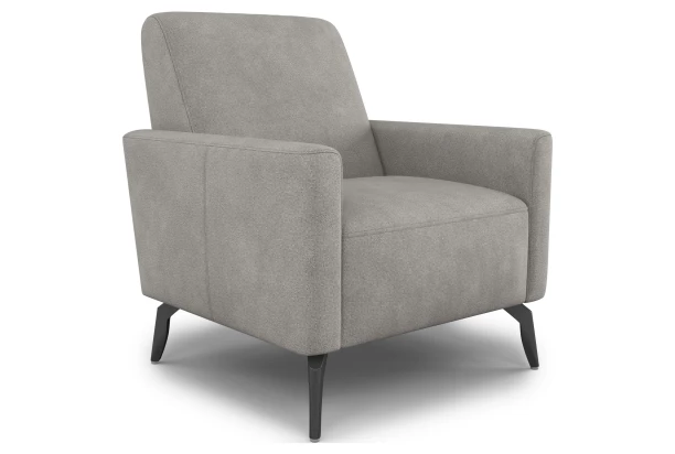 Klasické univerzální křeslo pro každý obývák má komfortní výšku sedu a je očalouněna jemně strukturovanou látkou v barvě šedo-béžová. Vyšší kovové nohy umožňují využívat také robotický vysavač.