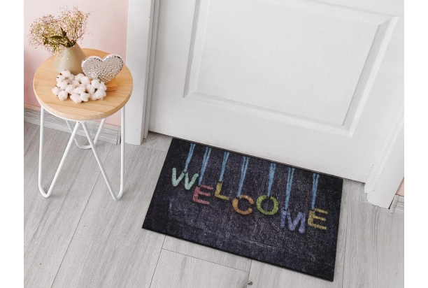 Stylová rohožka s barevným nápisem welcome skvěle vynikne před vchodovými dveřmi. Rohož vřele přivítá každého hosta a také očistí nepořádek z bot. Rozměr 40×60 cm.