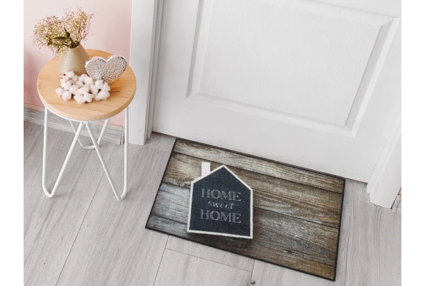 Stylová rohožka s nápisem HOME sweet HOME skvěle vynikne před vchodovými dveřmi. Rohož vřele přivítá každého hosta a také očistí nepořádek z bot. Rozměr 40×60 cm.