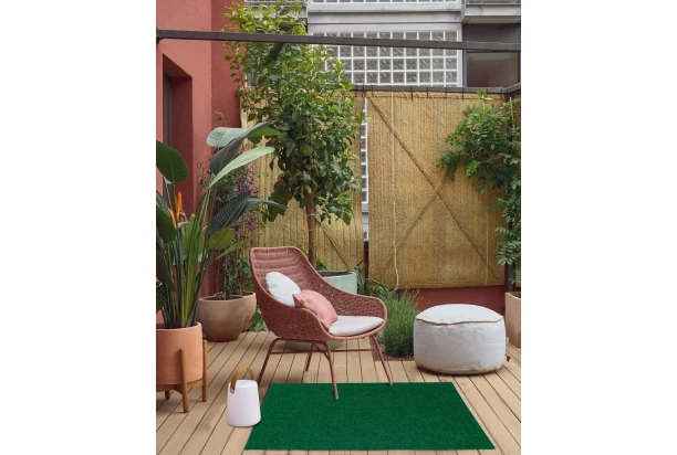 Umělý travní koberec/rohož můžete využít na balkoně, na terase, pod bazén, ale také v místnosti. Zkrátka kdekoliv, kde chcete vytvořit menší umělý travní povrch. Tento kobereček se hodí do venkovního prostředí, protože v případě deště odvádí vodu a na jeho povrchu se netvoří velké kaluže. Spodní část koberce je pevná s nopy, aby neklouzala. Rozměr 50×80 cm.