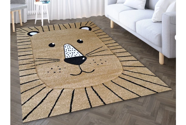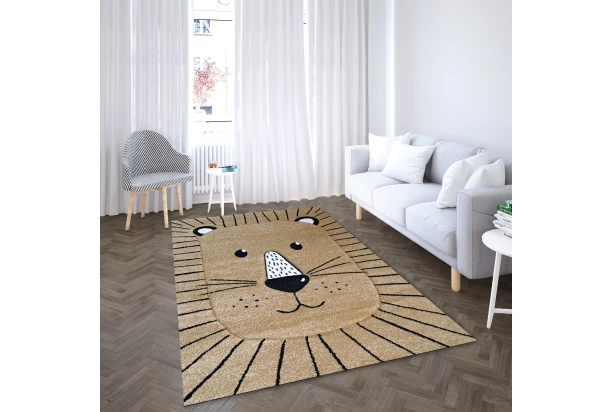 Měkký dětský koberec s hravým lvem v béžovém provedení vykouzlí úsměv na tváři a je dokonalým doplňkem do každého dětského pokojíčku. Rozměr 120×170 cm.