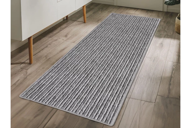 Koberec ve stříbrné barvě s příjemně měkkým povrchem doladí každou domácnost. Rozměr 67×180 cm.