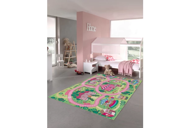Dětský koberec na hraní o rozměru 100×150 cm zaujme nápaditým a kouzelným designem. Oblíbí si jej hlavně dívky, protože koberec je laděn do růžové barvy. Tento dětský koberec je ideální pro všechny fanoušky aut a poskytuje fantastický hrací povrch, na kterém děti mohou se svými autíčky prozkoumávat ulice vedoucí mezi hradem, cirkusovým stanem, obchody a kolotočem. Vaše děti se zabaví na dlouhé hodiny, a proto je tento koberec skvělý doplněk do dětského pokoje.