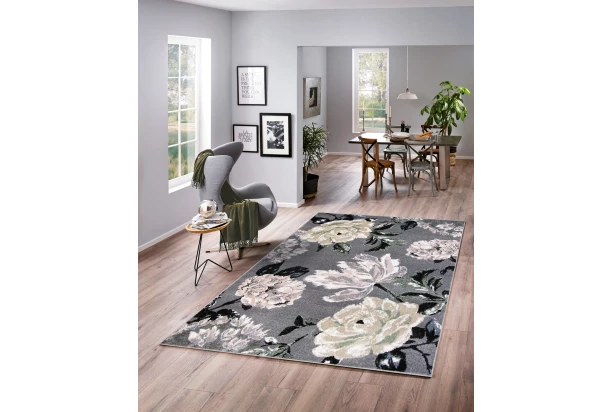 Tento moderní koberec v rozměrech 120×170 cm vnese do vašeho interiéru nádech elegance. Šedá barva v kombinaci s květinovým vzorem působí nadčasově a stylově. Koberec se stane dokonalým doplňkem každé místnosti.