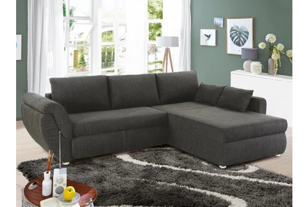Zaoblená rohová sedačka s příjemně měkkými polštáři pro útulnou domácí pohodu. Díky funkci rozkladu se sedačka snadno promění v lůžko pro příležitostné spaní.