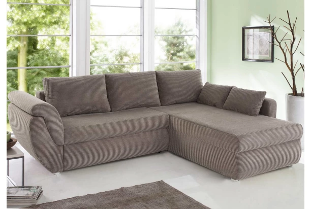 Zaoblená rohová sedací souprava s příjemně měkkými polštáři pro útulnou domácí pohodu. Díky funkci rozkladu se sedačka snadno promění v lůžko pro příležitostné spaní. Otoman můžete univerzálně smontovat na pravou nebo levou stranu – najde tak snadno místo v jakékoliv místnosti. Očalouněna měkkou strukturovanou látkou v odstínu šedo-hnědá taupe.