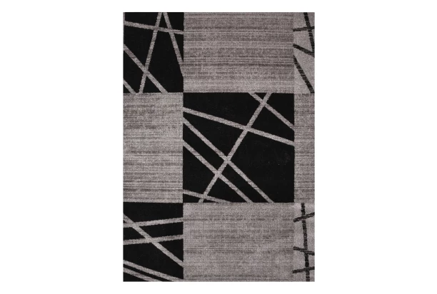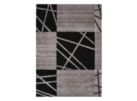 Moderní koberec o rozměrech 120×170 cm s abstraktním geometrickým vzorem čar a čtverců v kombinaci šedé a černé barvy přinese styl a originalitu do každého interiéru. Hodí se do obýváku, ložnice nebo dětského pokoje.