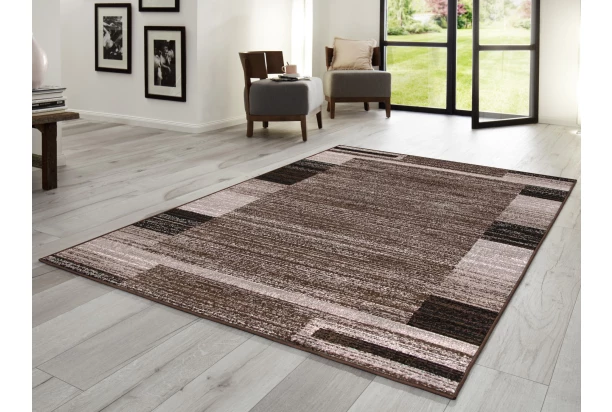 Moderní koberec o rozměru 80×150 cm v hnědé barvě se skvěle hodí do obývacího pokoje, ložnice nebo pracovny. S výškou vlasu cca 7,5 mm poskytuje příjemný pocit pod nohama, zároveň je nenáročný na údržbu. Speciální úprava frisee zajišťuje mírně stočené vlákno, které přináší řadu benefitů, jako je například vyšší odolnost proti sešlapání (koberec si udrží svůj objem a vzhled i při častém používání).