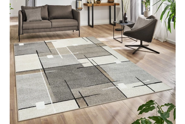 Moderní koberec o rozměru 80×140 cm s grafickým vzorem s krátkým vlasem je velmi poutavý a díky béžovému provedení také univerzální. Hodí se do obýváku, dětského pokoje nebo třeba do vstupní části.