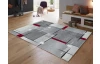 Moderní koberec o rozměrech 160×220 cm zaujme grafickým vzorem v šedých tónech, které oživuje sytý červený prvek. Díky krátkému vlasu je nenáročný na údržbu a skvěle se hodí do obývacího pokoje, dětského pokoje nebo předsíně.