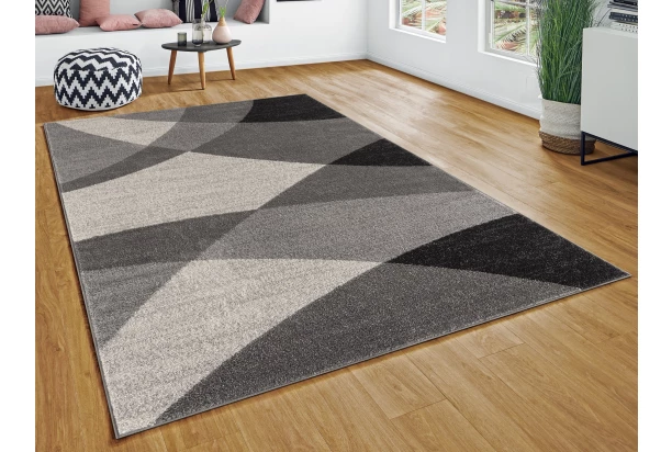 Moderní koberec o rozměru 160×220 cm s abstraktním vzorem s krátkým vlasem je velmi poutavý a díky šedému provedení také univerzální. Hodí se do mnoha interiérů a lze jej umístit do obýváku, dětského pokoje nebo třeba do vstupní části.