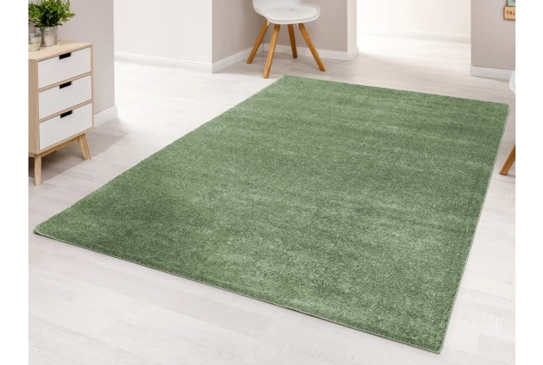 Jednobarevný mátově zelený koberec o rozměru 160×230 cm s nízkým vlasem je neuvěřitelně měkký a v pokojích navodí útulnou atmosféru.