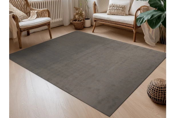 Koberec o rozměru 120×170 cm je elegantní a zároveň praktický doplněk do obývacího pokoje, ložnice či pracovny. Jeho moderní neutrální antracitové provedení se snadno kombinuje s různými styly nábytku a barevnými schématy, od minimalistických až po industriální interiéry.