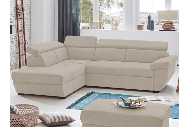 Nechte se inspirovat zajímavým designem tvarů rohové sedačky Speedway, která v interieru jen tak nezevšední. Očalouněna látkou v odstínu béžová a s levým otomanem. Oceníte komfortně měkký sedák i polohovatelné zádové opěrky – snadno si tak můžete přizpůsobit styl sezení podle Vaší individuální potřeby. Včetně funkce rozkladu a úložného prostoru.