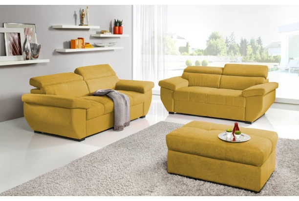 - potah: látka New York G005 – jemně strukturovaná mikro tkanina, barva hořčicově žlutá (složení: 100% PES, otěruvzdornost: 30.000 cyklů)