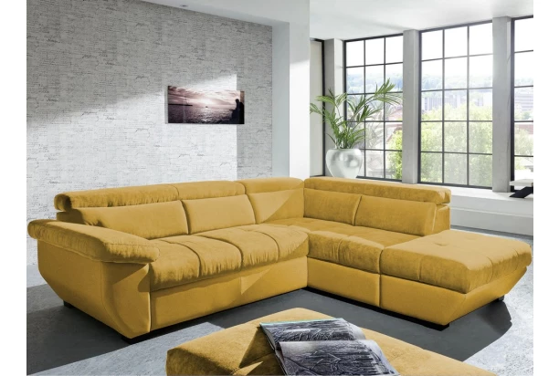 Nechte se inspirovat zajímavým designem tvarů rohové sedačky Speedway, která v interieru jen tak nezevšední. Očalouněna látkou v odstínu hořčicově žlutá a s pravým otomanem. Oceníte komfortně měkký sedák i polohovatelné zádové opěrky – snadno si tak můžete přizpůsobit styl sezení podle Vaší individuální potřeby. Včetně funkce rozkladu a úložného prostoru.